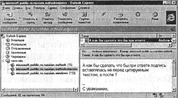 4.17. Найти телеконференцию, посвященную работе с почтовой программой Outlook Express, и ознакомиться с ее содержанием.