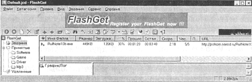 Загрузка файлов с помощью специализированных менеджеров загрузки. Однако удобнее для работы с файловыми архивами использовать специализированные менеджеры загрузки файлов (например, FlashGet, GoIZilla, ReGet и др.). Такие менеджеры позволяют увеличить скорость загрузки за счет разбиения файлов на части и одновременной загрузки всех частей. Кроме того, они позволяют продолжить загрузку файла после разрыва соединения с сервером, содержат средство поиска файла на других серверах файловых архивов, позволяют архивировать файлы в процессе их загрузки и так далее.