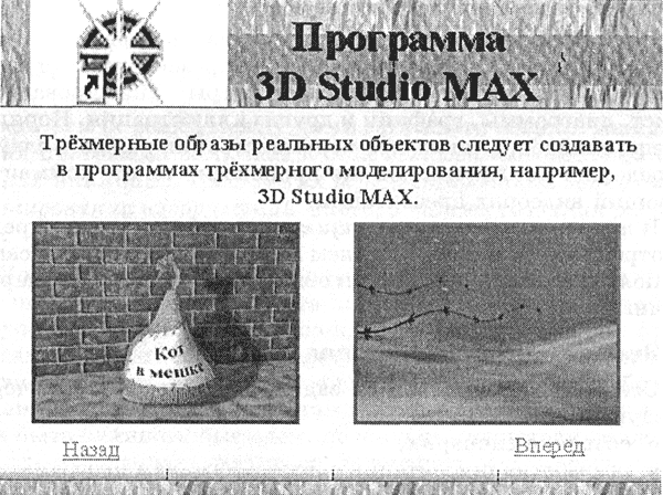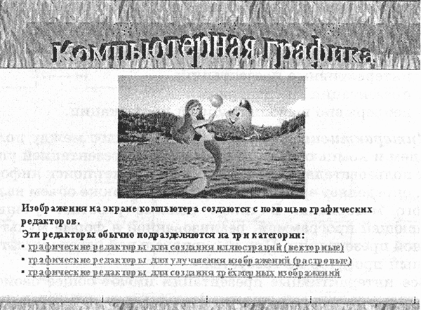 | Рис. 1.5. Слайд, на который был выполнен переход после щелчка мышью на гиперссылке графические редакторы для создания трехмерных изображений |