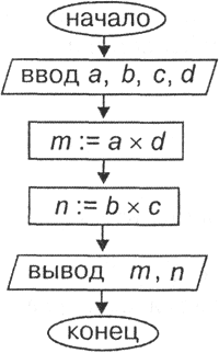 Раньше прямоугольник в схемах алгоритмов управления мы называли блоком простой команды. Для вычислительных алгоритмов такой простой командой является команда присваивания. Прямоугольник будем называть блоком присваивания, или вычислительным блоком. В форме параллелограмма рисуется блок ввода/вывода. Полученный алгоритм имеет линейную структуру (рис. 3.5).
