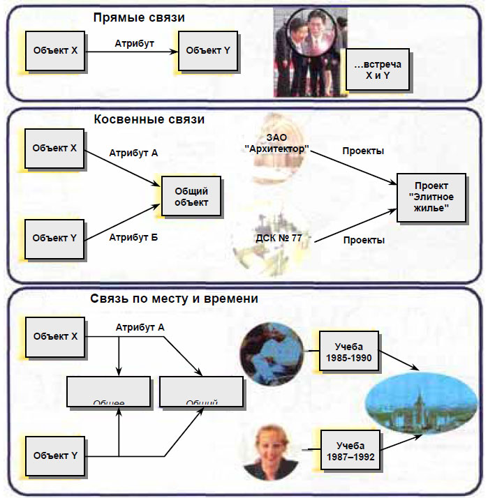 • автоматическое выявление косвенных связей объекта с другими объектами (связи че-