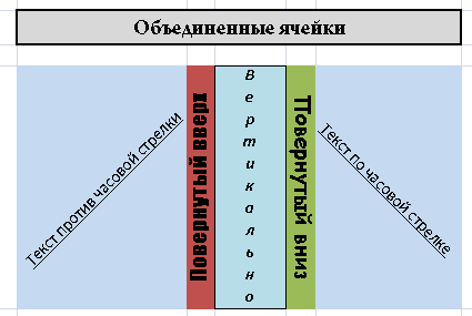 С помощью команд меню, открываемого стрелкой кнопки Ориентация , можно задать направление поворота текста в ячейке.