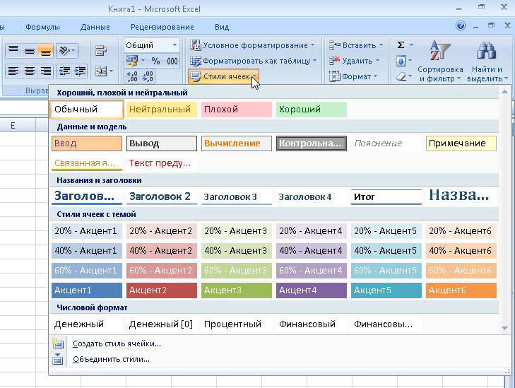 Рис. 15. Выбор стиля ячеек